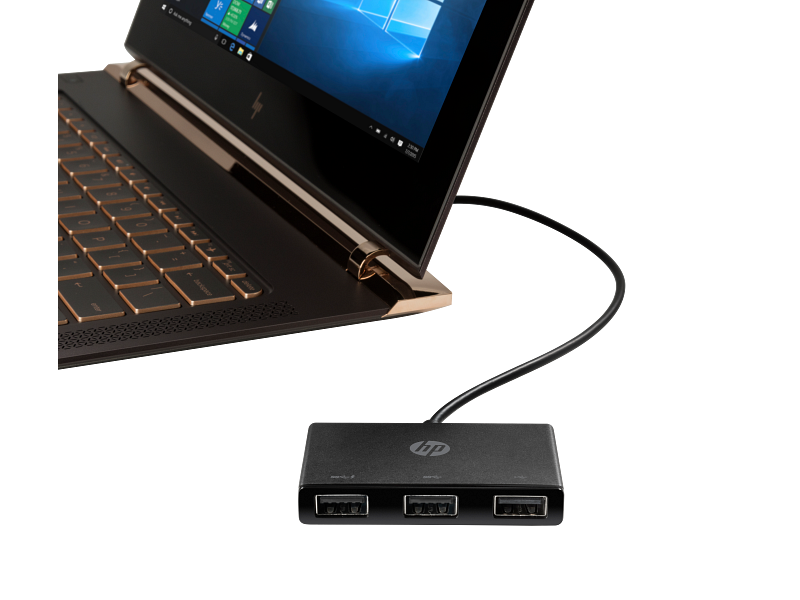 Maak van de USB-C™-poort op je notebook of tablet een gemakkelijk draagbare USB-hub en ondersteun gelijktijdige aansluiting van maximaal drie USB-accessoires met de HP USB-C naar USB-A hub.