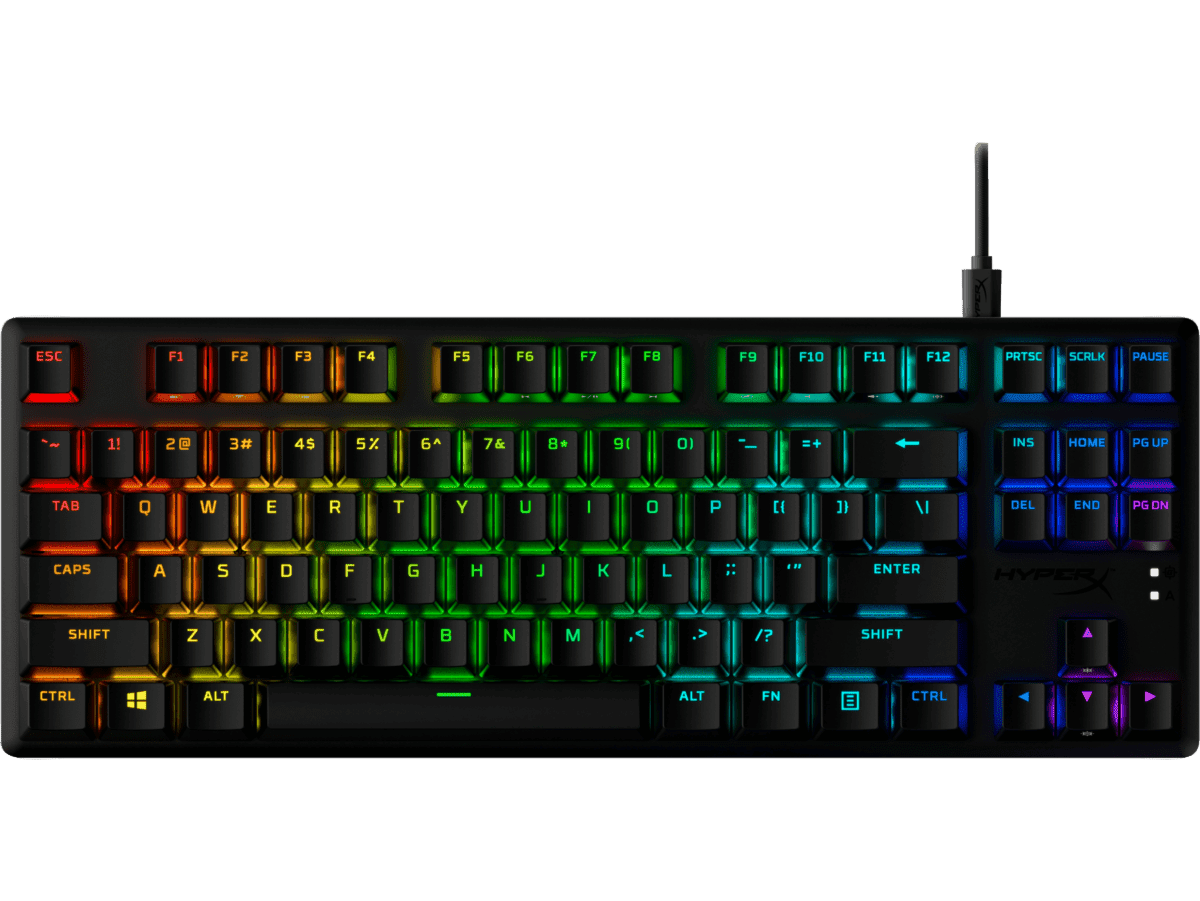 Teclado mecánico para gaming, cable USB extraíble, extractor de teclas HyperX, 1 tecla ESC diseñada por HyperX, 1 barra espaciadora diseñada por HyperX, guía de inicio rápido