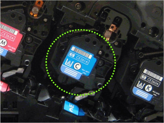 has been installed. It might be related to adverse storage conditions. - A contaminant has damaged one of the components in the cyan print cartridge.