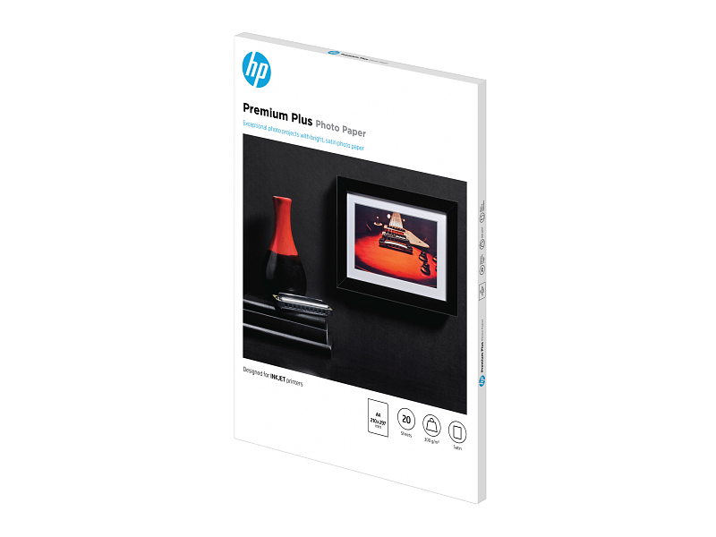 HP Premium Plus -valokuvapaperi, satiininen, 300 g/m2, A4 (210 × 297 mm), 20 arkkia (CR673A)