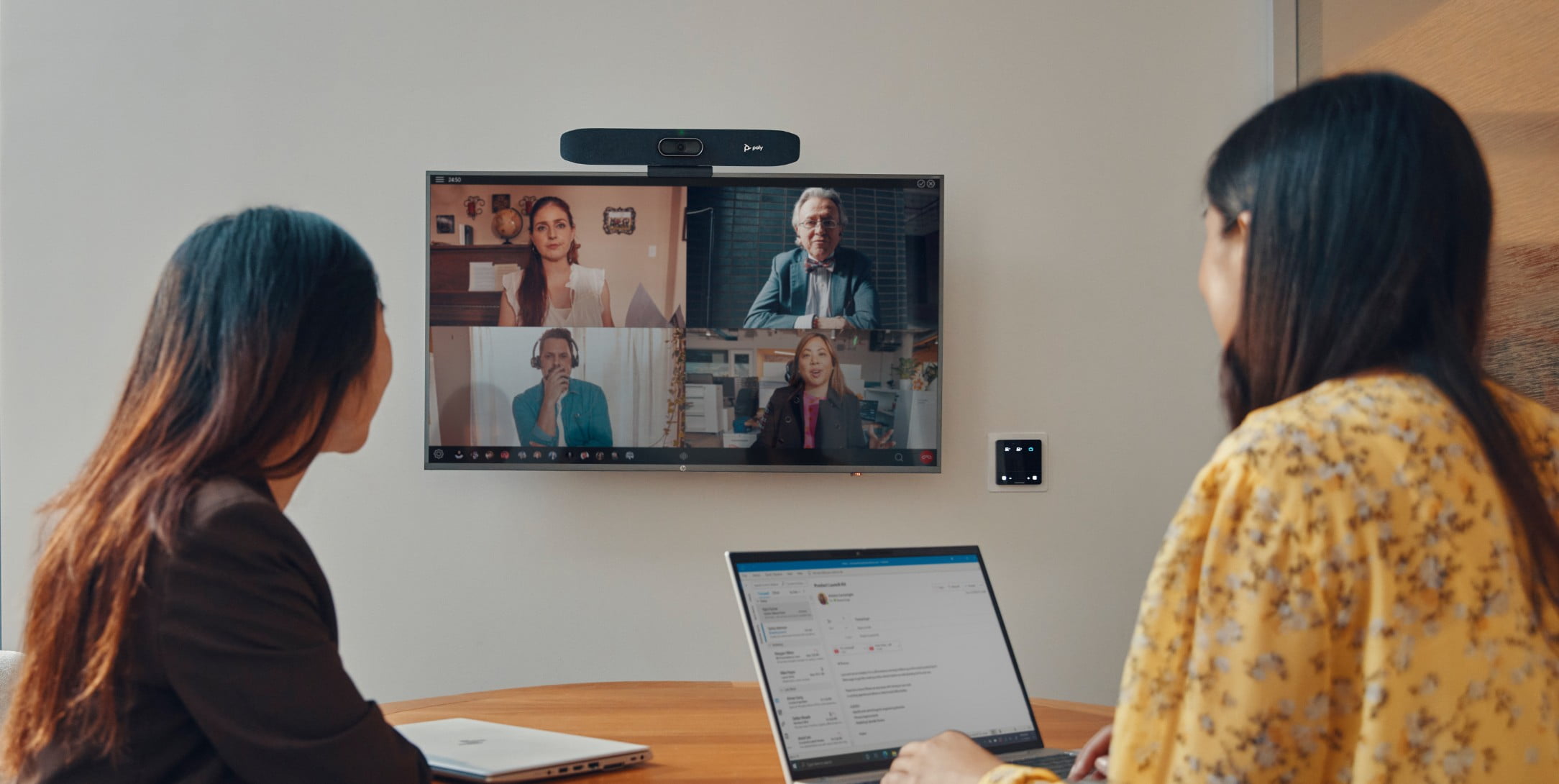 Ya sea una reunión de equipo o de todo el personal, o principalmente virtuales, los kits de Poly Studio para Zoom Rooms reúnen a todo el mundo.