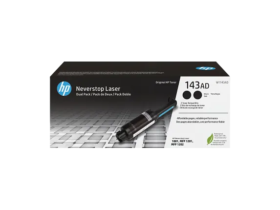Get the innovative way to print laser pages with a very low-cost Original HP toner replacement design. Print on and on. Print thousands of pages with just one HP Black Original Neverstop Laser Toner Reload Kit. The dual pack black toner reload kit delivers up to 5,000 pages for fewer replacement purchases.