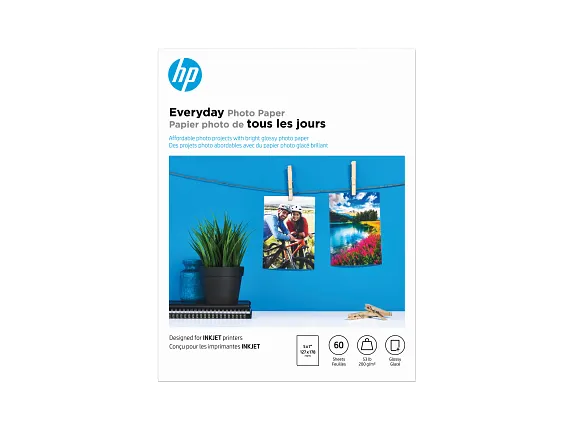 HP Everyday Photo Paper, Glossy, 52 lb, 5 x 7 in. (127 x 178 mm), 60 sheets CH097A