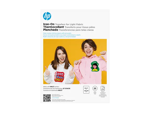 HP Iron-On Transfers for Light Fabric, 8.5 x 11 in, 20 sheets