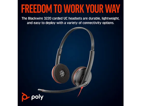 Poly Blackwire 3220 Stereo USB-C Headset +USB-C/A Adapter