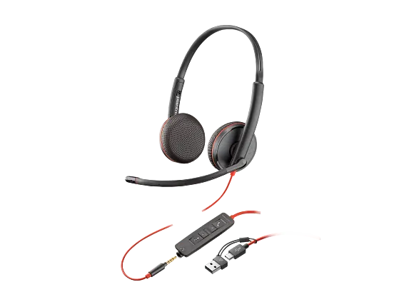 Poly Blackwire 3225 Stereo USB-C Headset +3.5mm Plug +USB-C/A Adapter